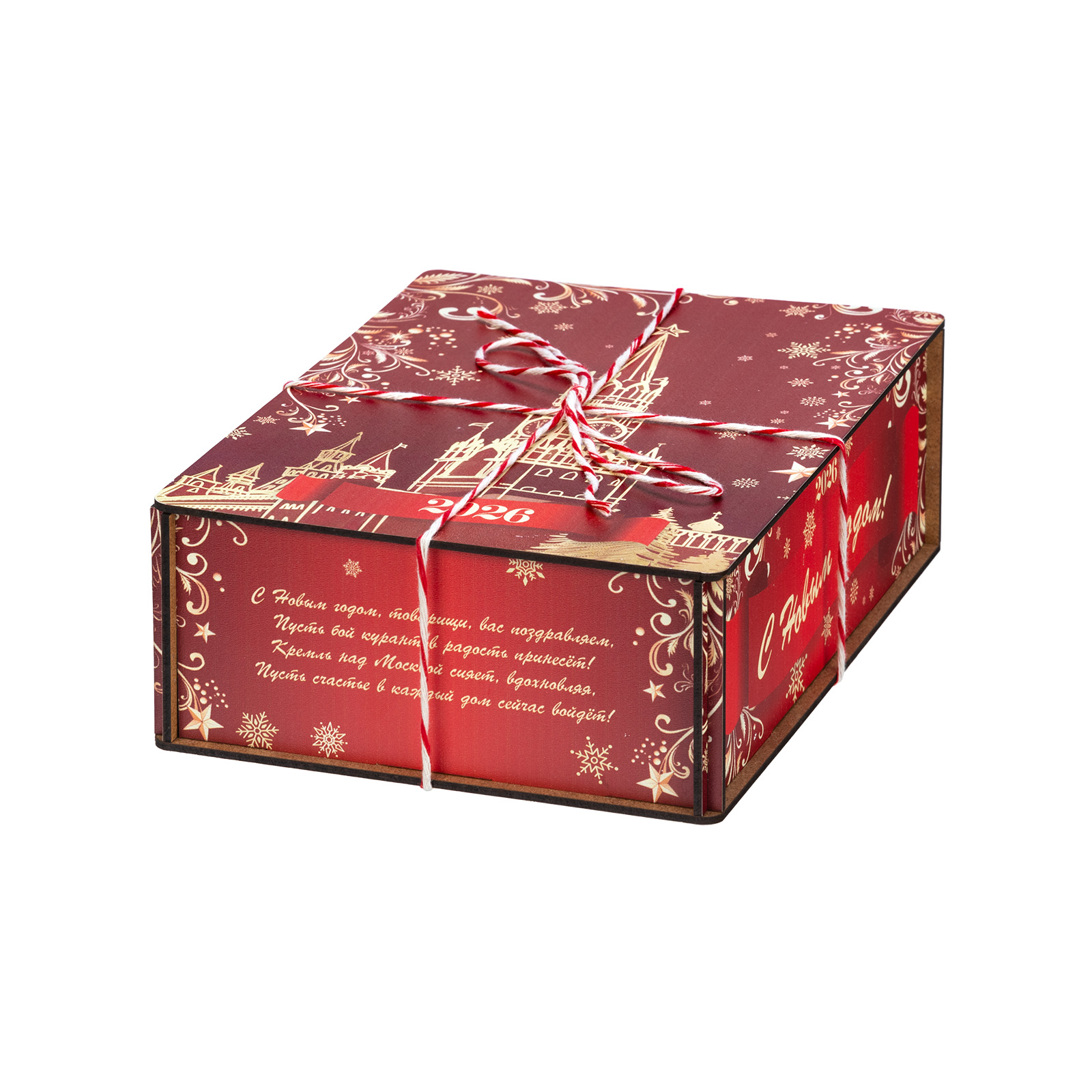 Ищете новогодний сладкий подарок коллеге, педагогу или руководителю? Обратите внимание на подарочный набор “Кремль”, который идеально сочетает в себе солидную красочную упаковку и превосходный вкус кондитерских изделий Подарочная упаковка выполнена из качественного дерева и окрашена в разные оттенки красного цвета. Со всех сторон можно увидеть контрастные узоры и поздравительные надписи, а на крышке изображен один из самых узнаваемых новогодних символов - Кремлевские куранты. В состав подарка входит килограмм разнообразных кондитерских изделий от ведущих кондитерских предприятий и небольшой памятный сувенир в виде символа наступающего года. Такой прекрасный подарок сделает любое новогоднее торжество незабываемым.